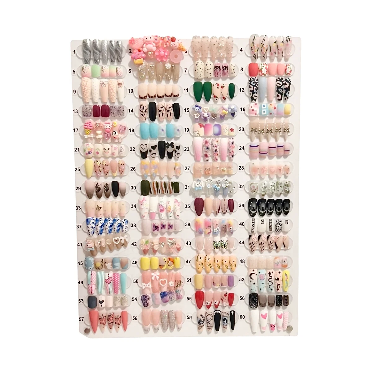 This number refers to a specific nail design matching the same number on the nails display board, meaning you’ll receive a set of press-on nails handpicked by your lucky star.