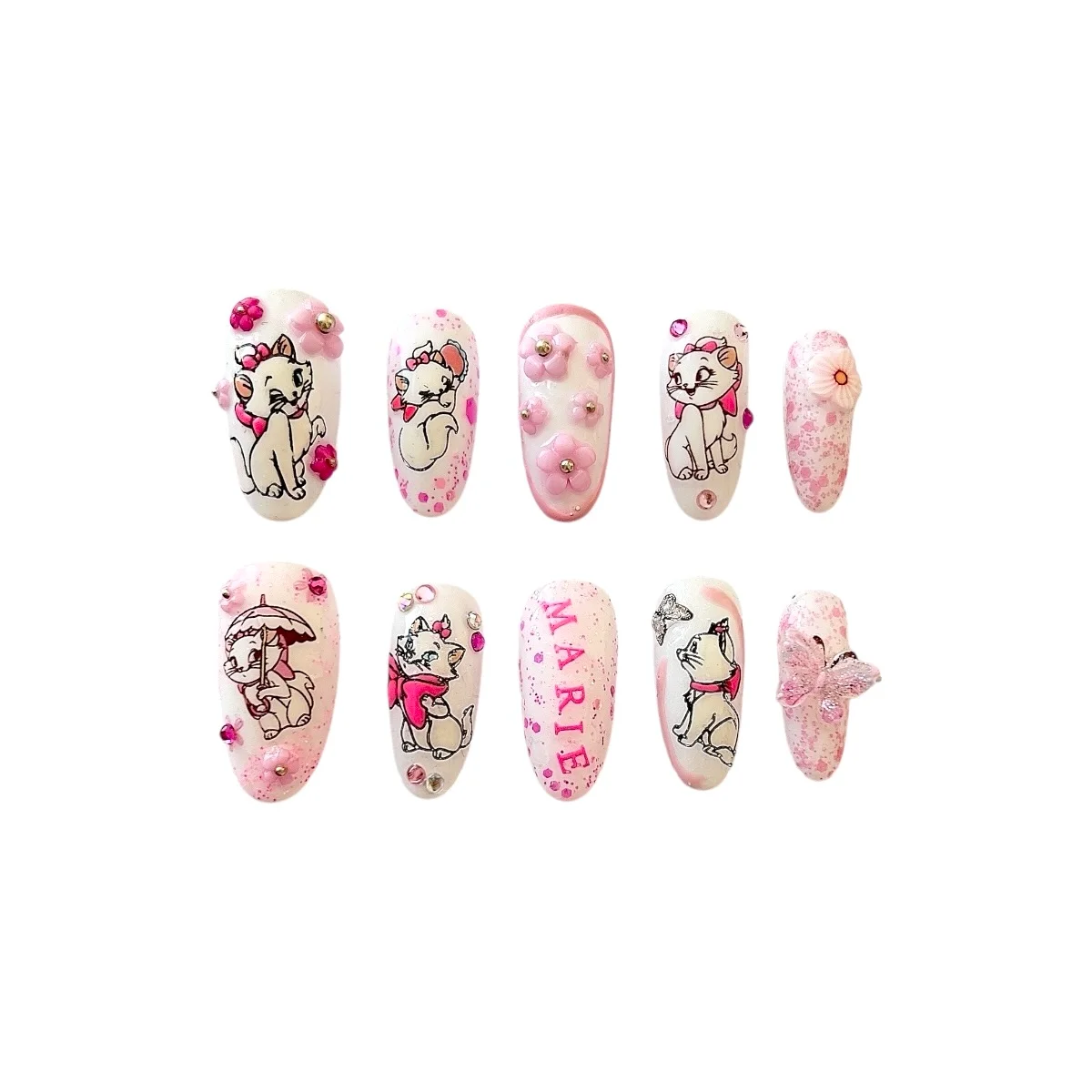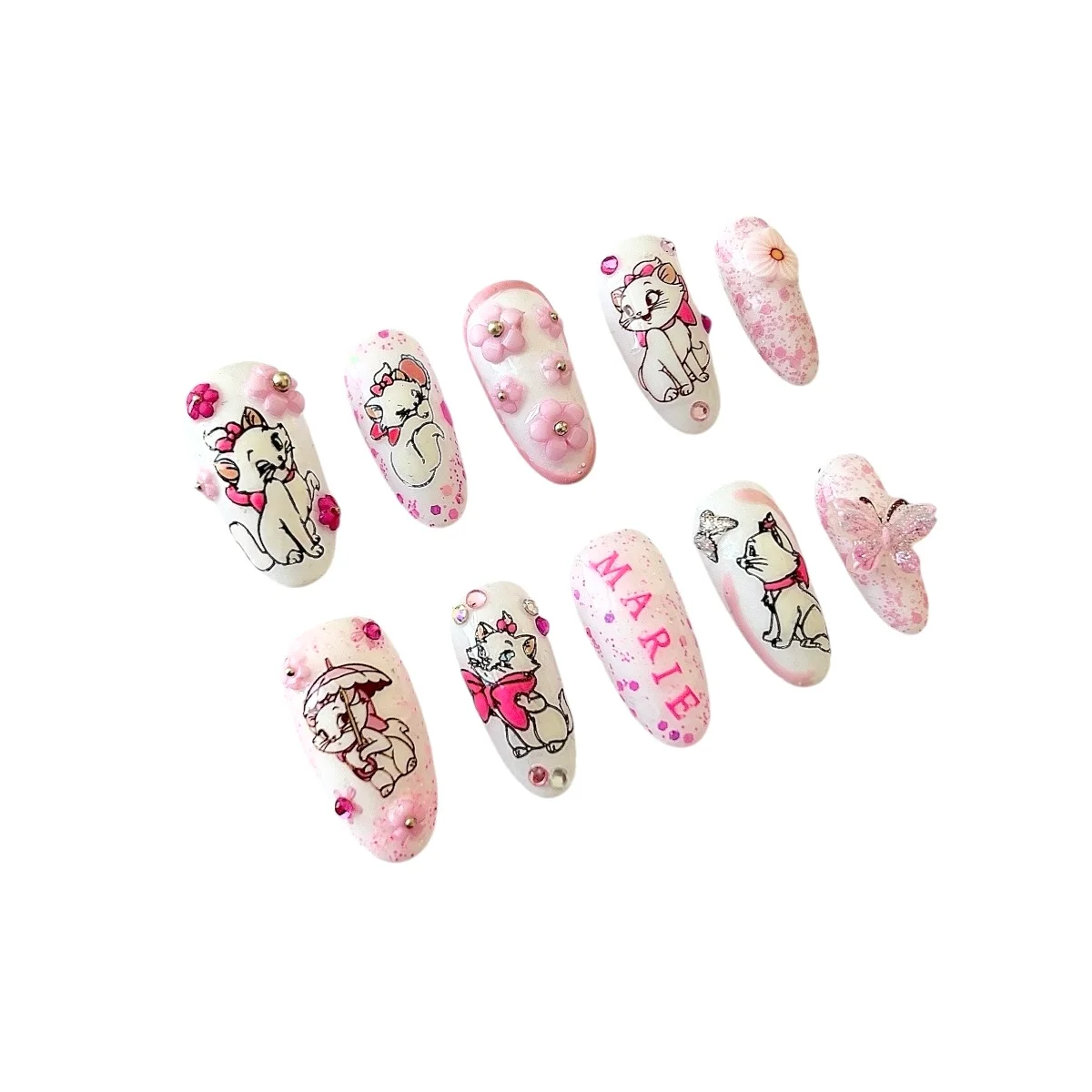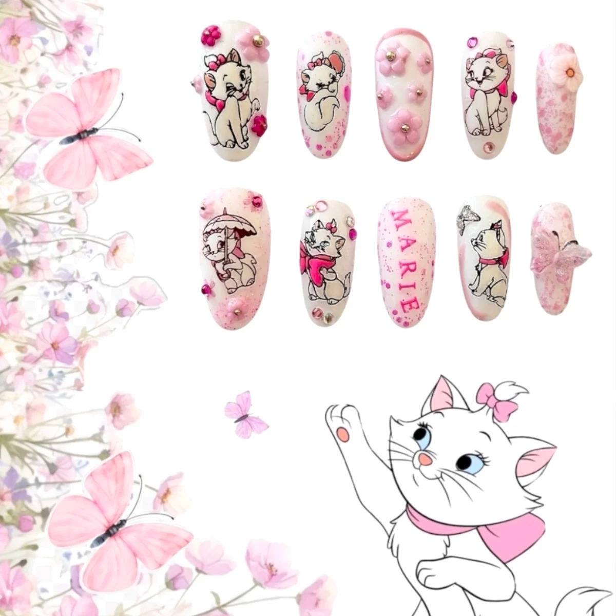 🫧 Effect: Playful yet elegant — featuring adorable Marie illustrations, crystal gems, 3D blossoms, and a fluttering butterfly that add movement and sweetness