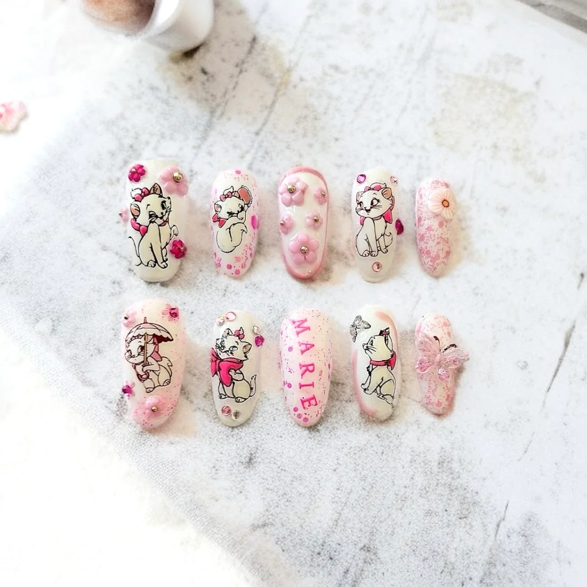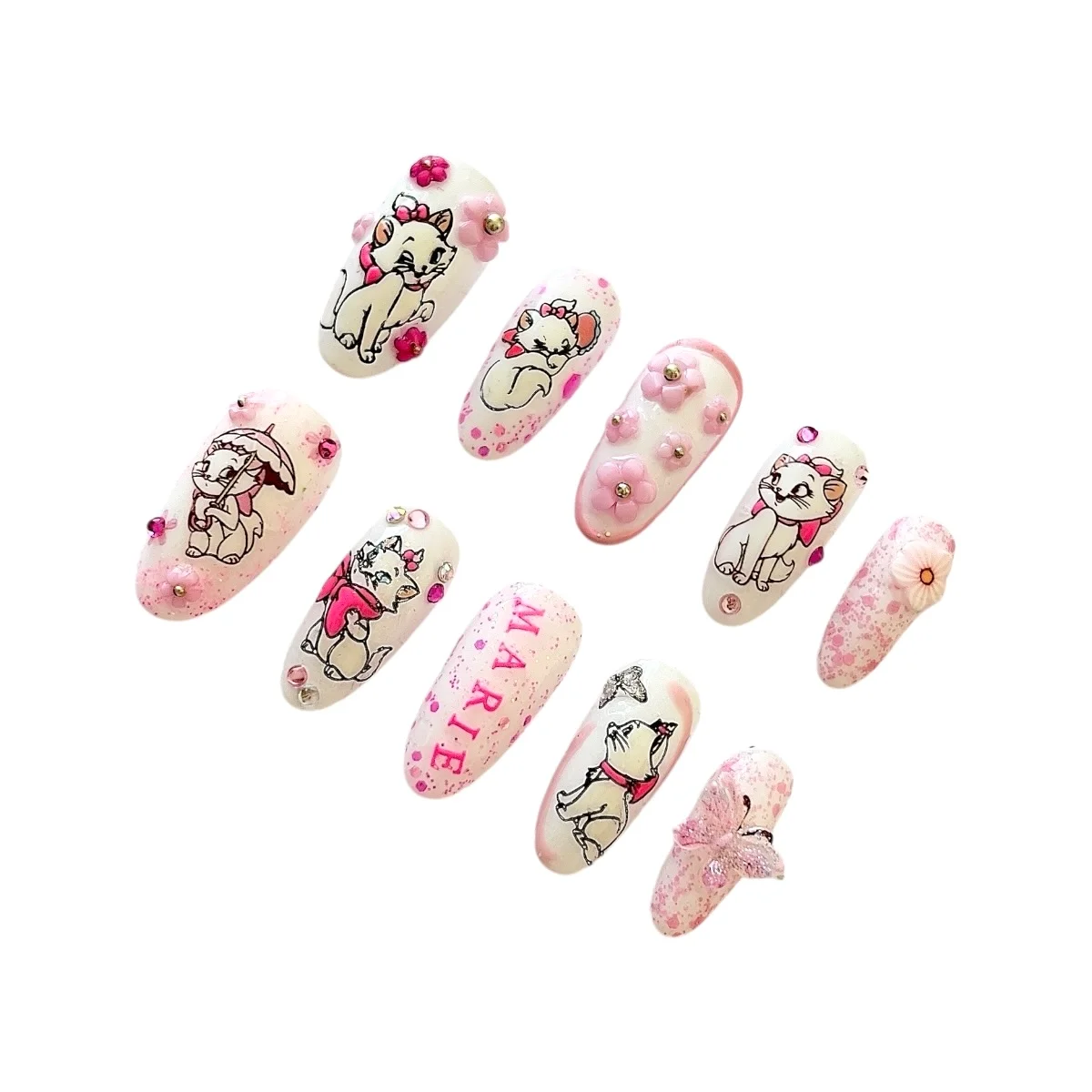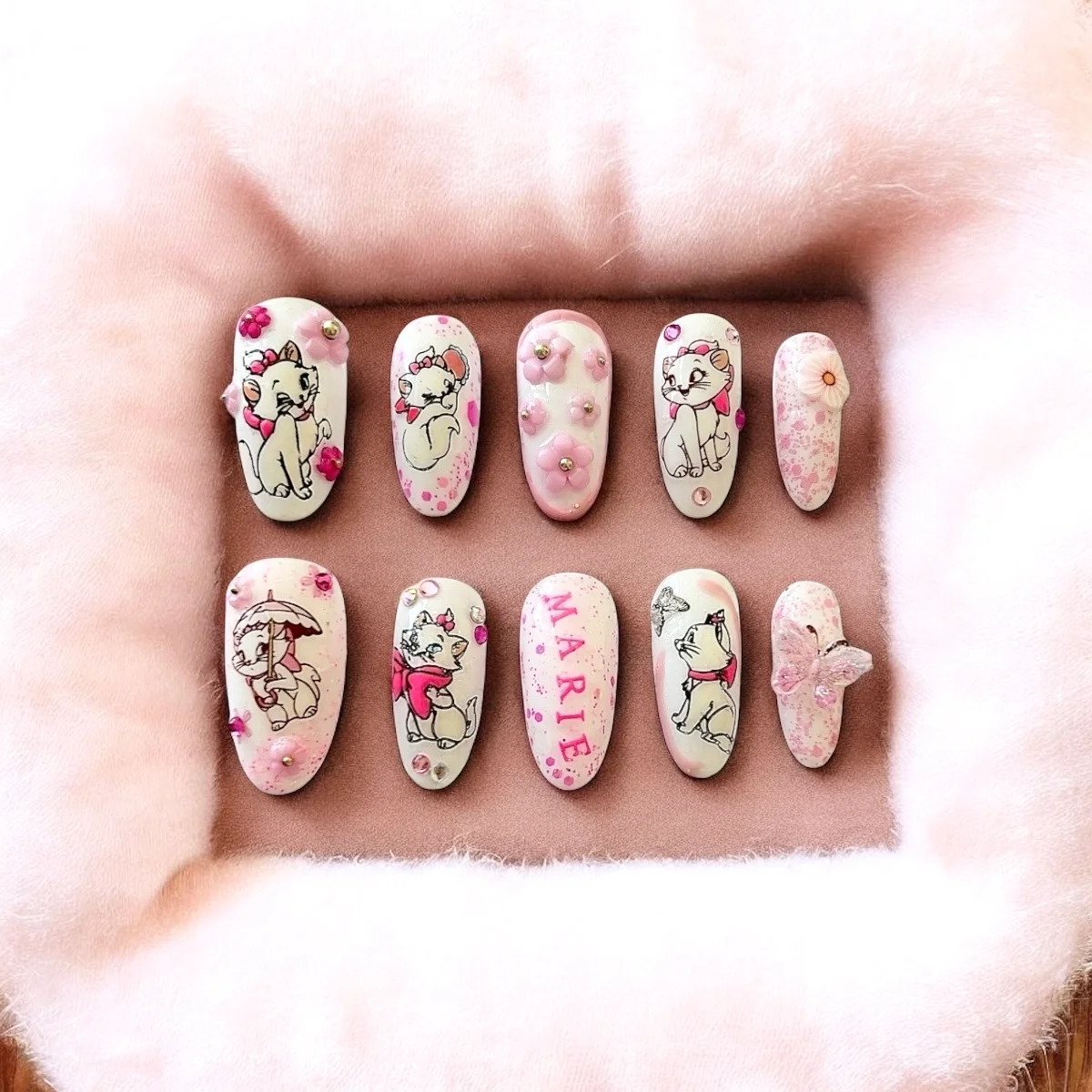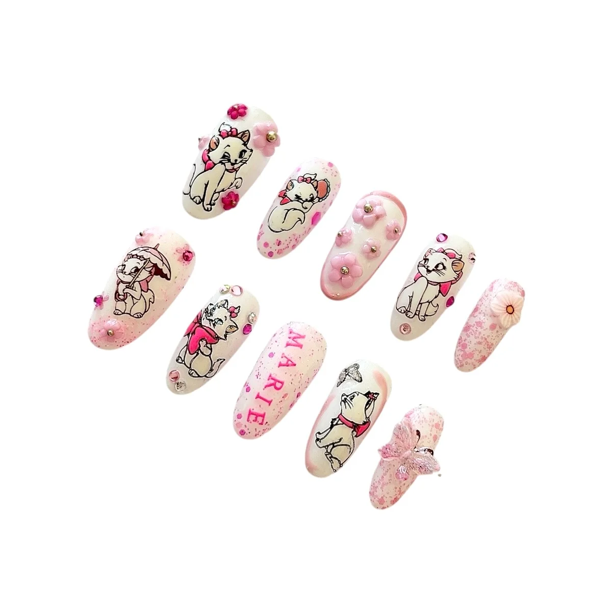 🫧 Effect: Playful yet elegant — featuring adorable Marie illustrations, crystal gems, 3D blossoms, and a fluttering butterfly that add movement and sweetness