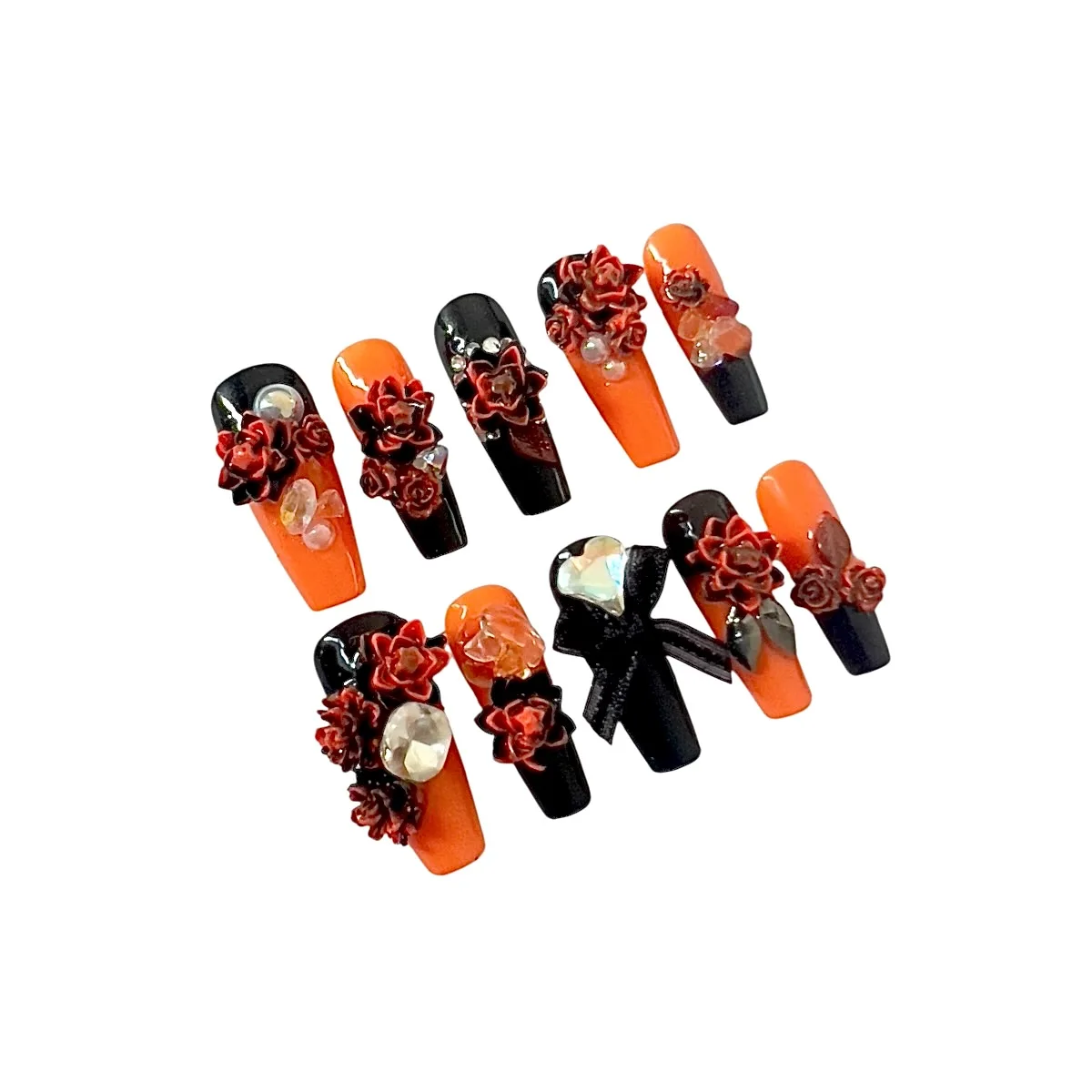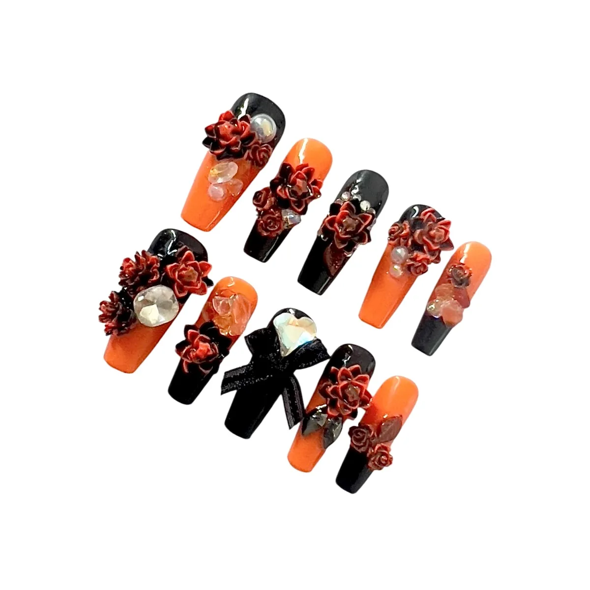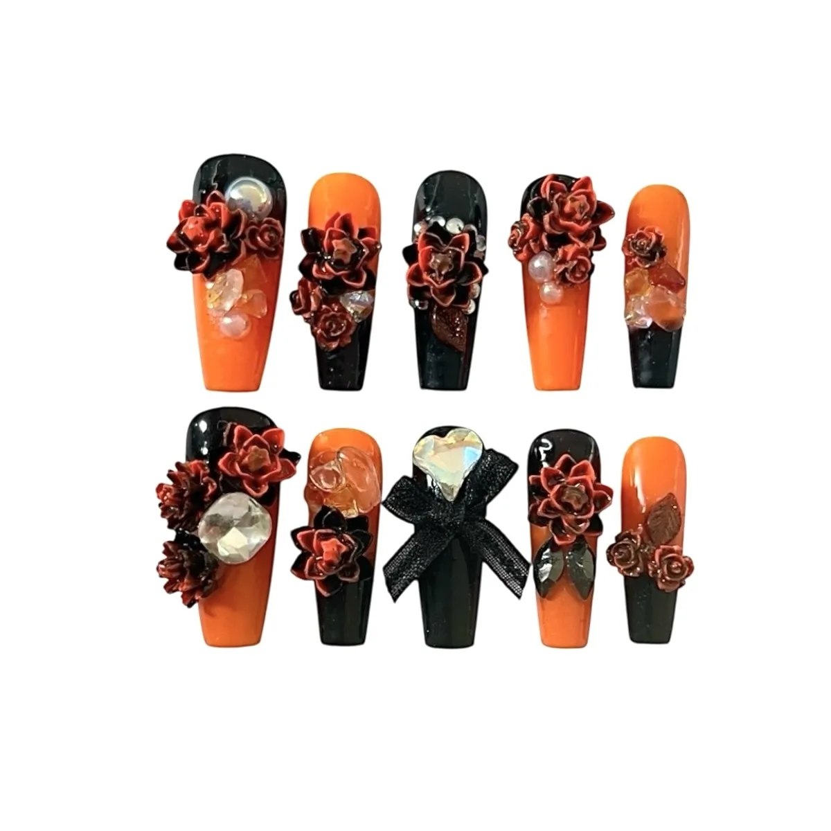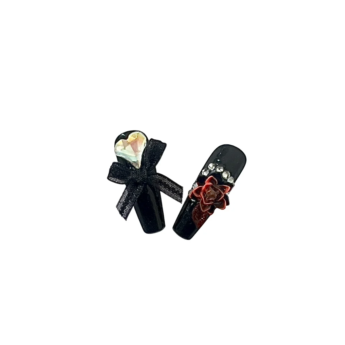 🔮 Finish: High-shine gloss with 3D sculpted roses, crystals, and a satin black bow centerpiece