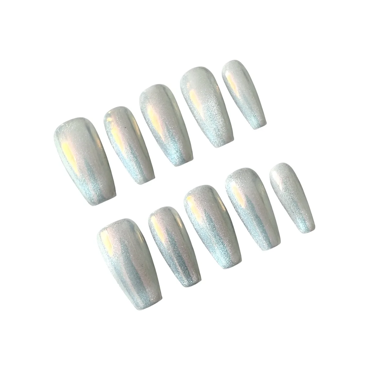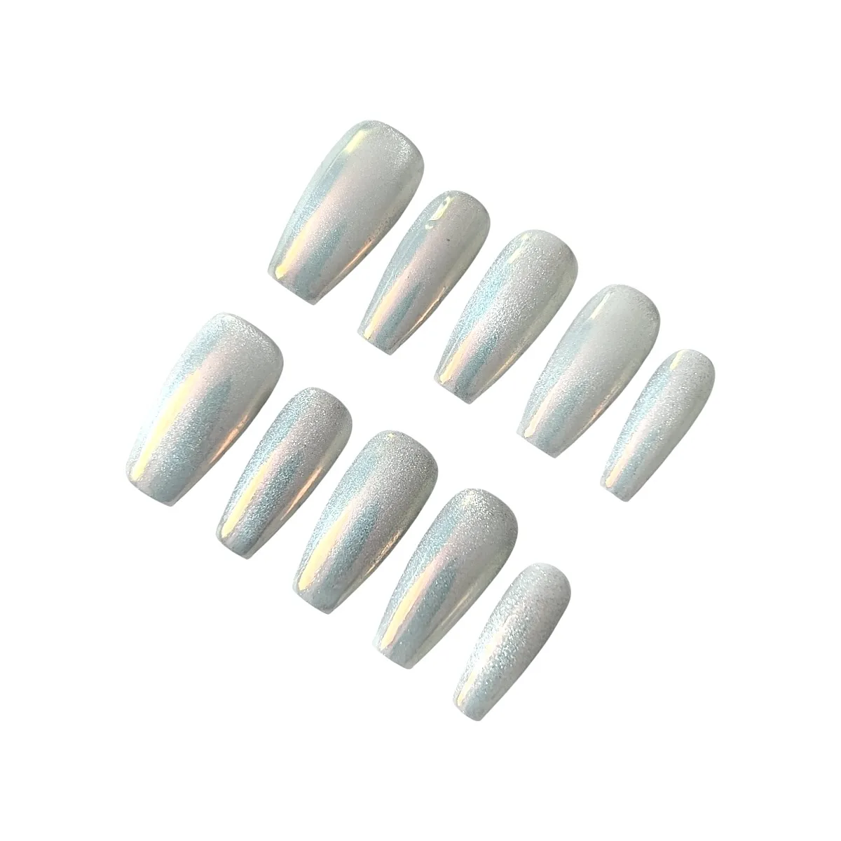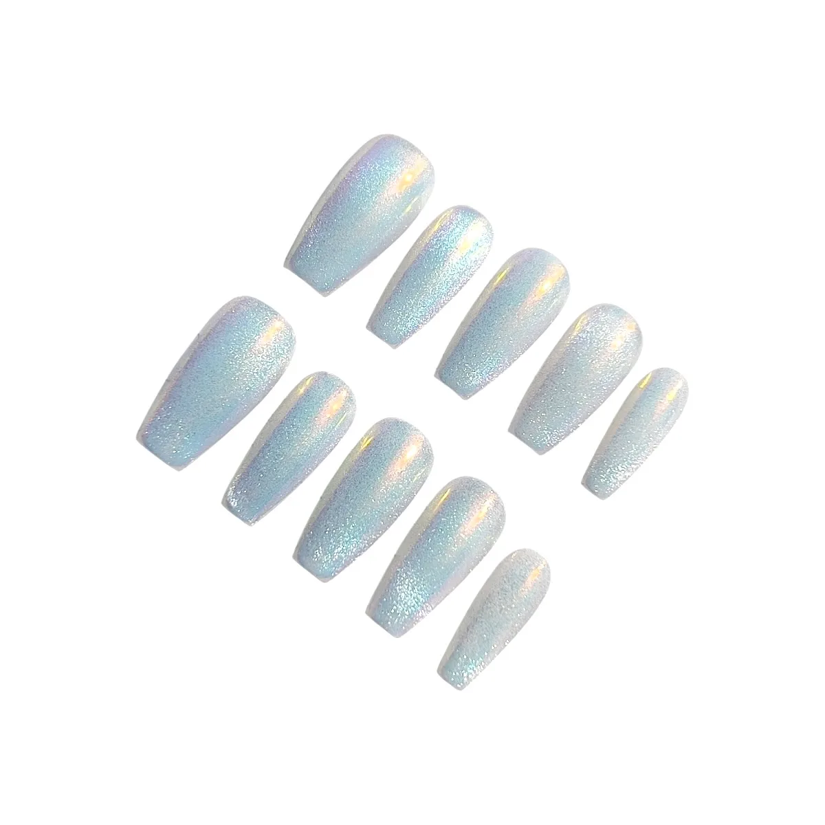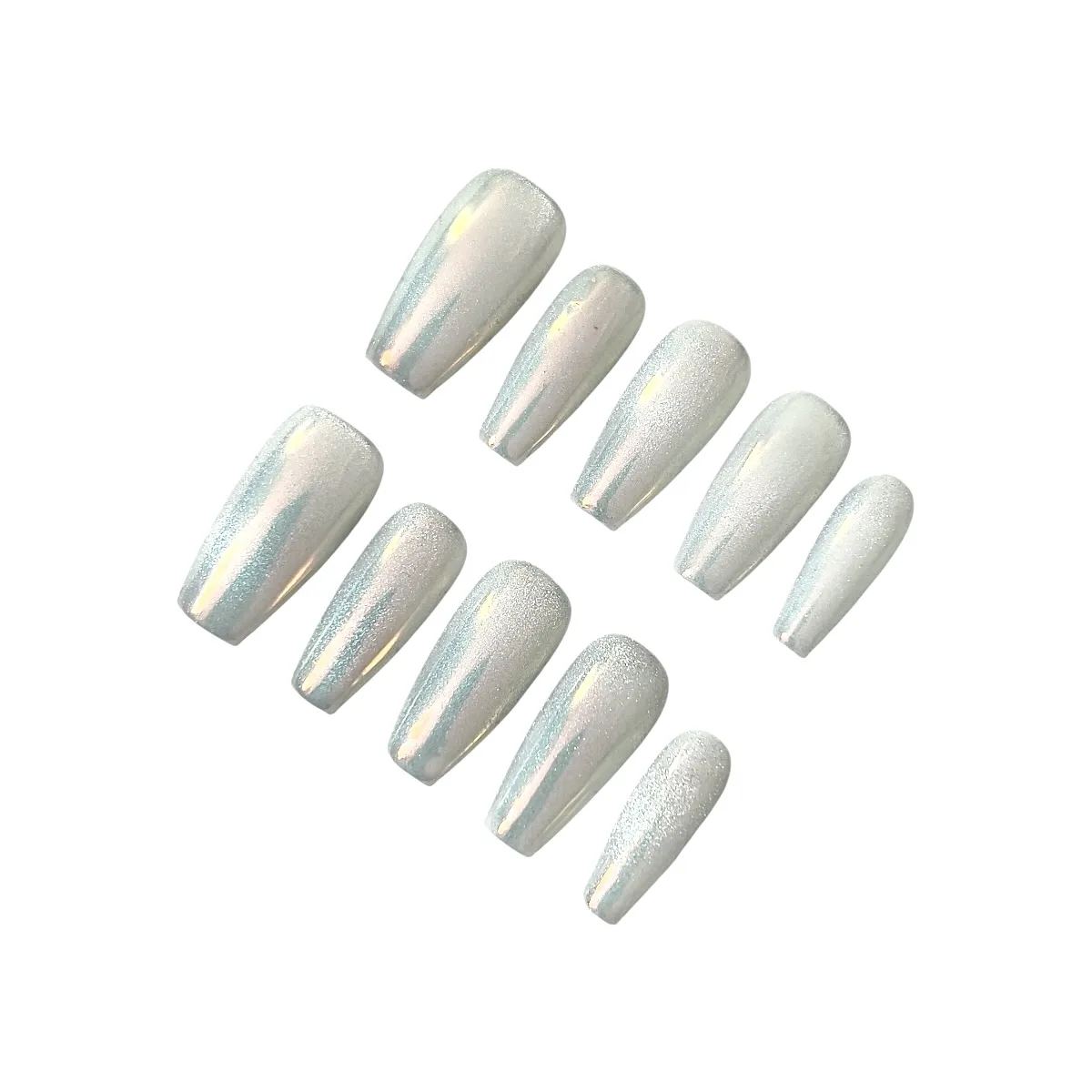 💅 Color: Iridescent white, with aqua blue, and soft orange holographic reflections