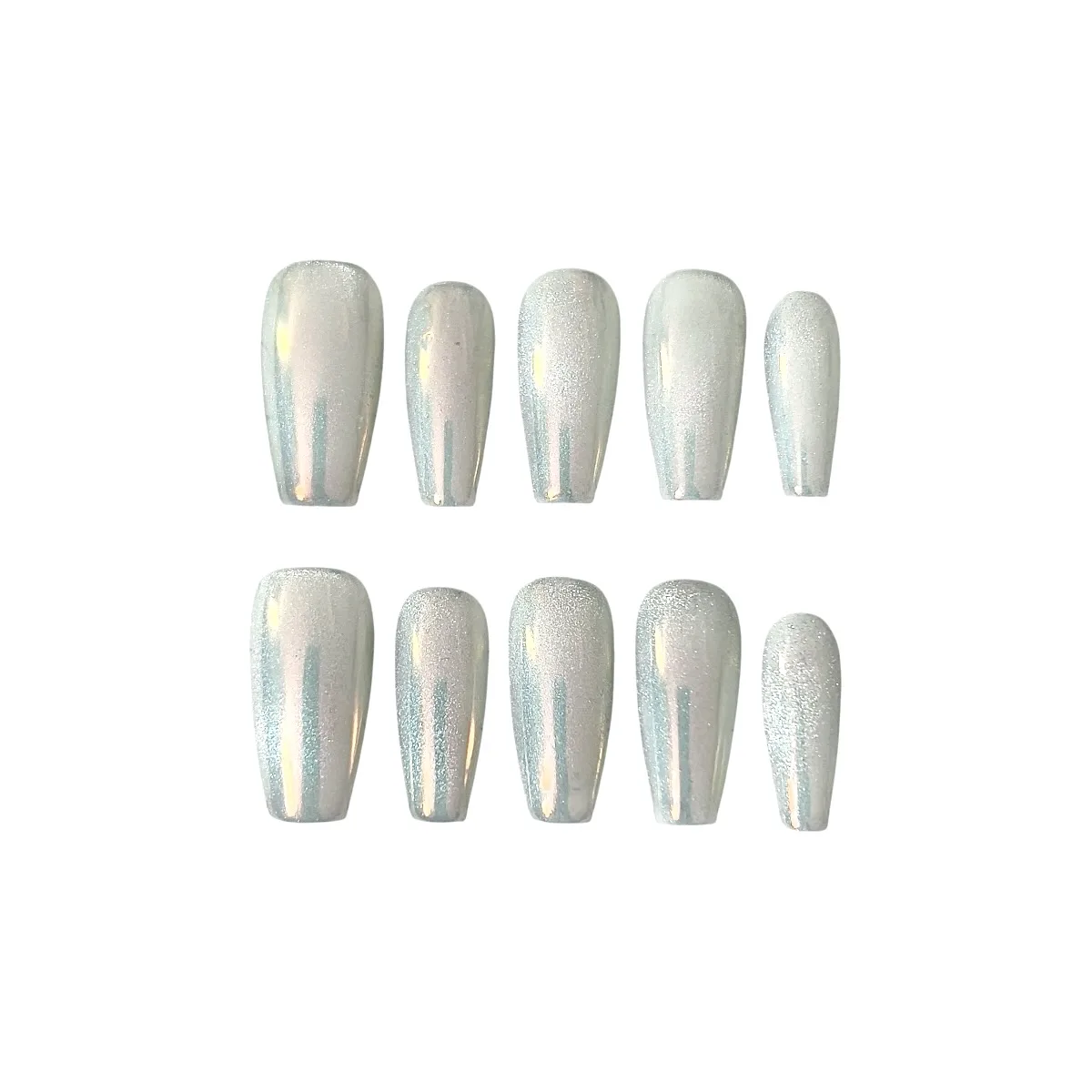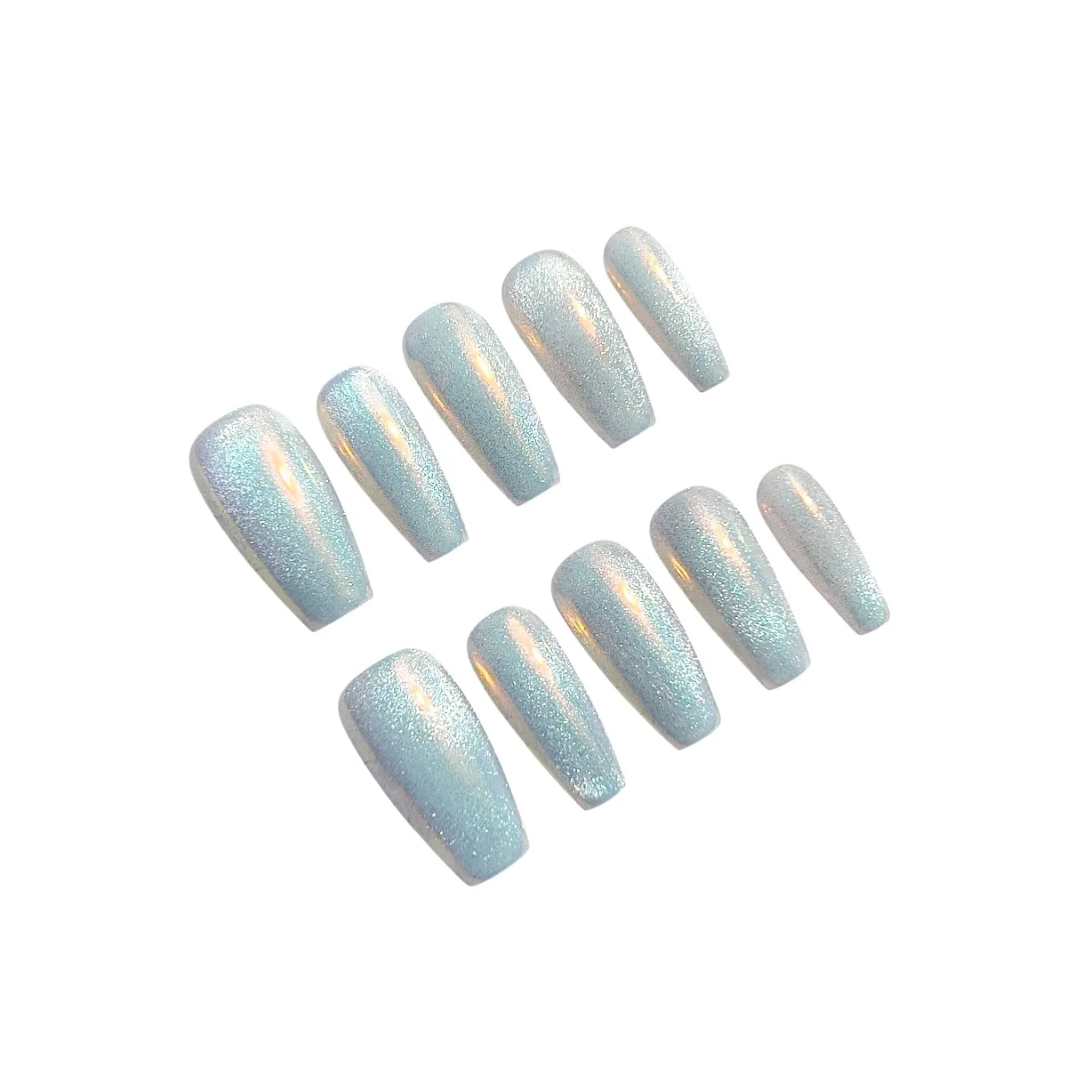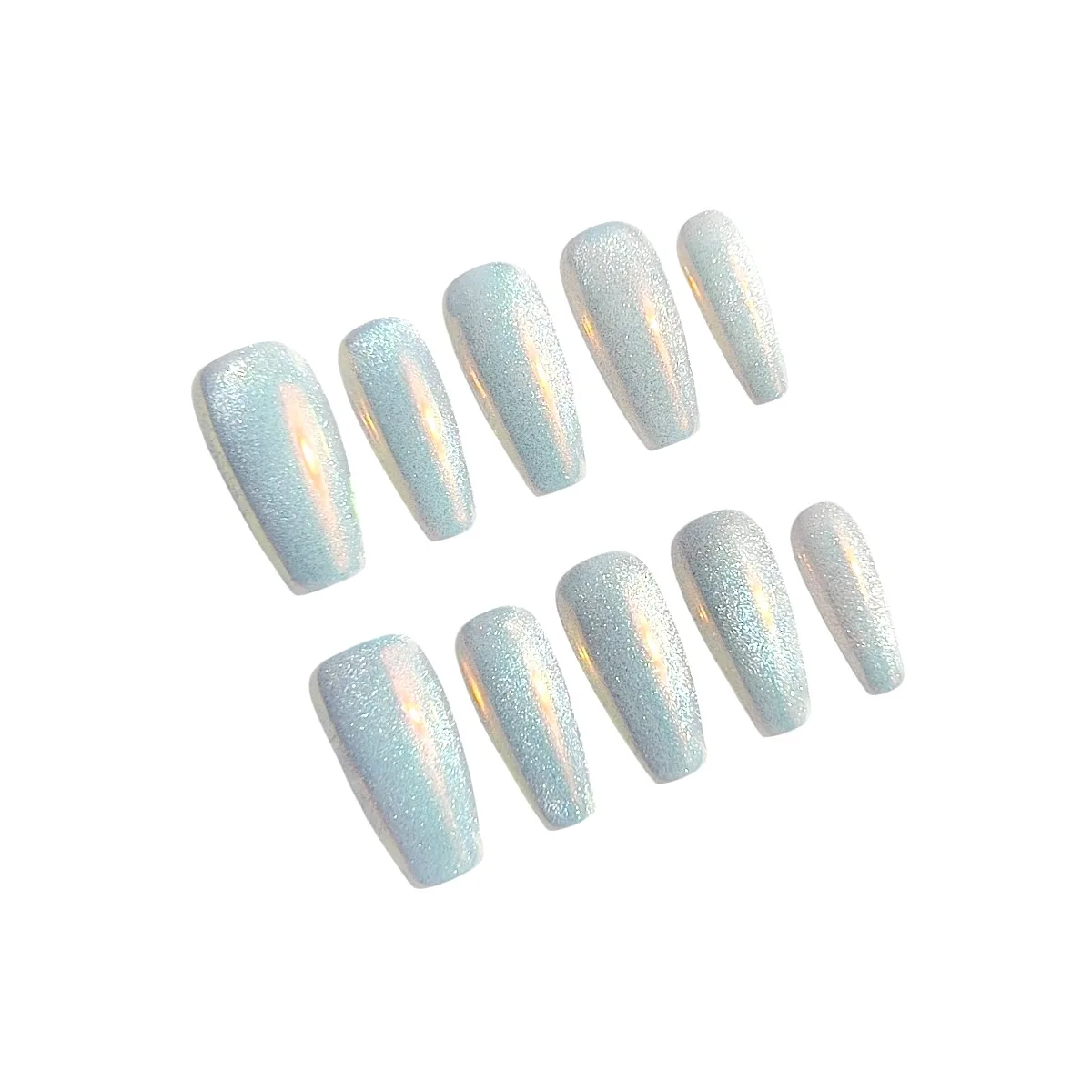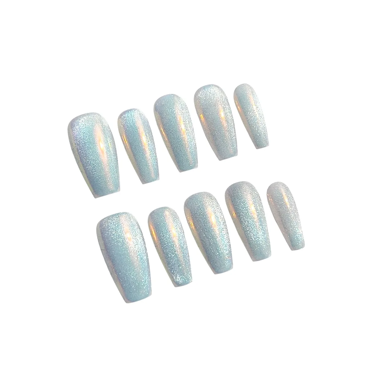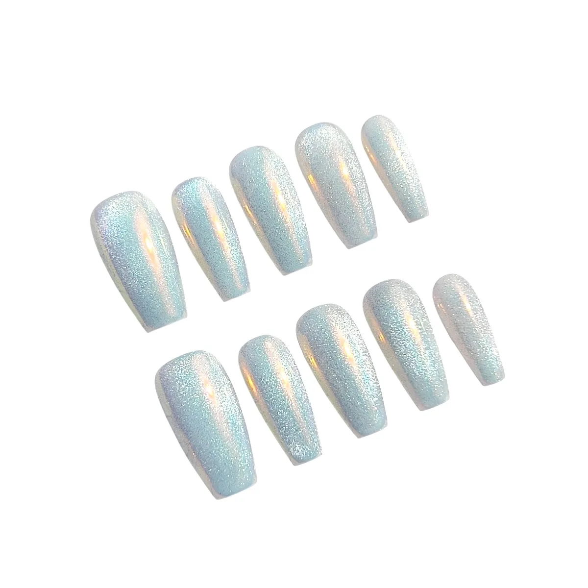 💅 Color: Iridescent white, with aqua blue, and soft orange holographic reflections