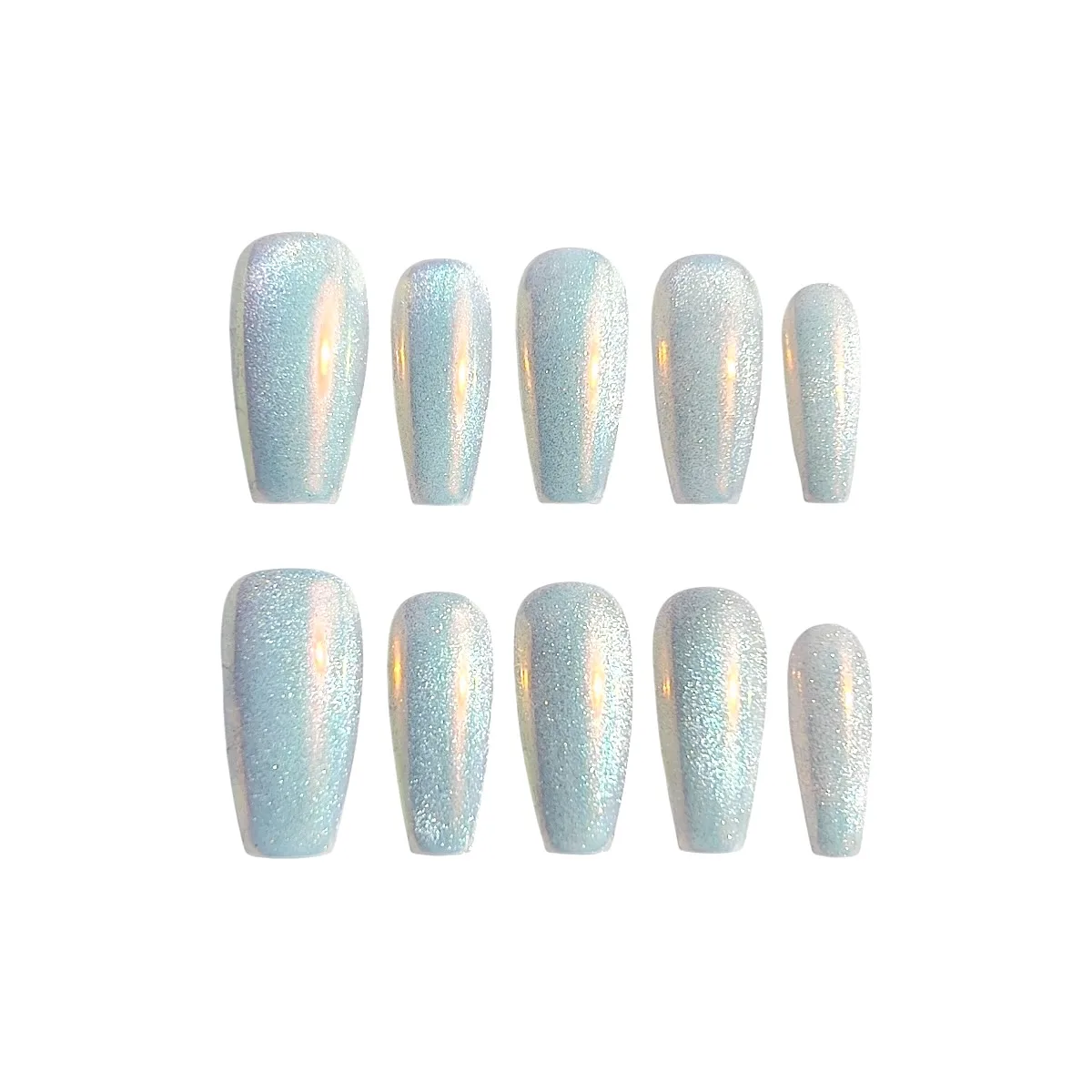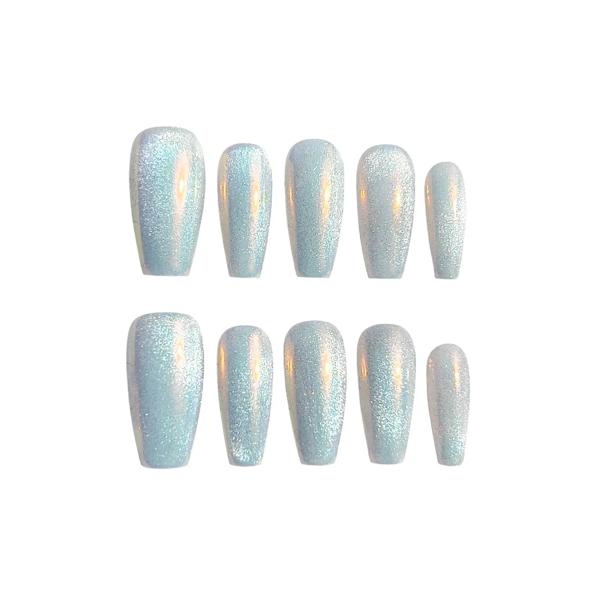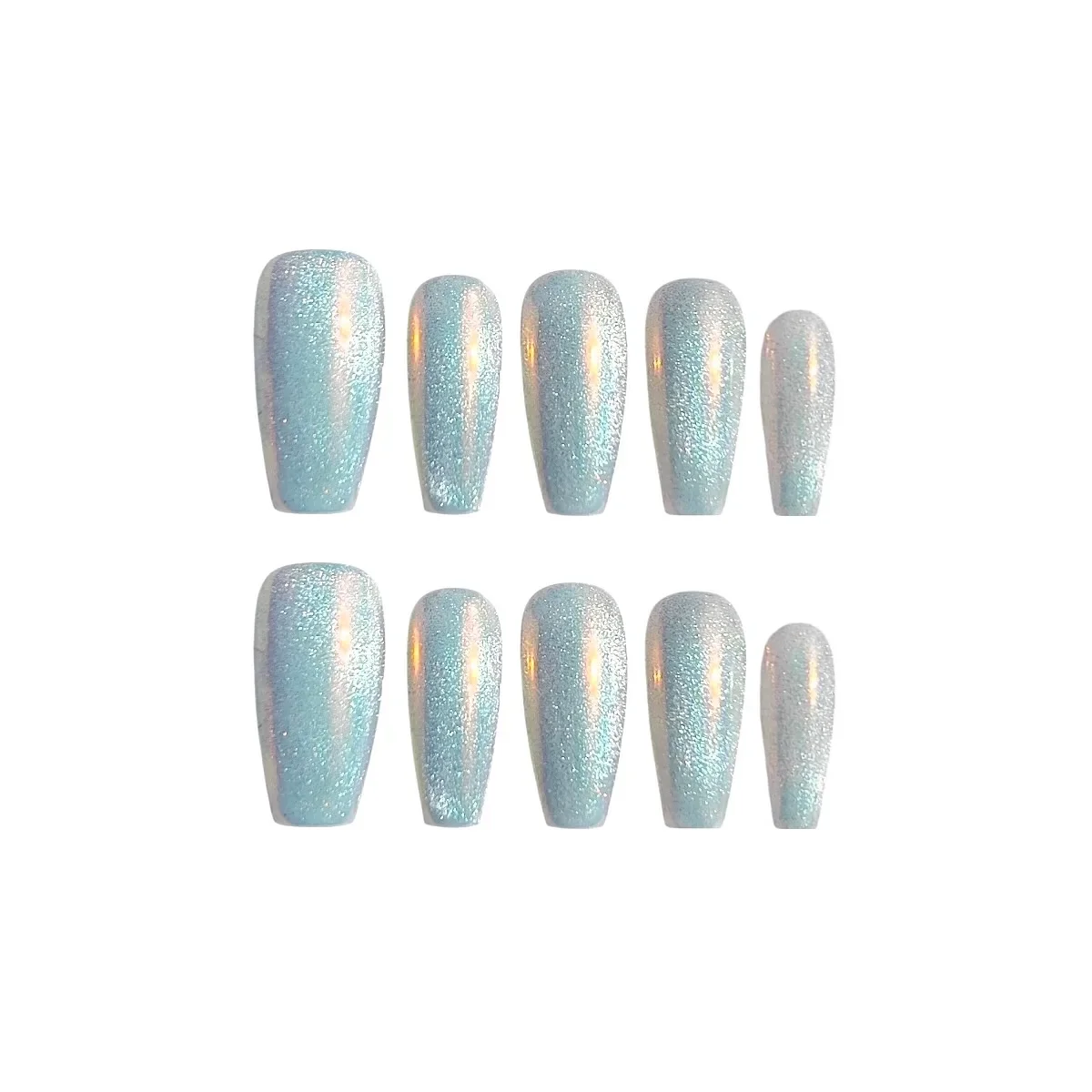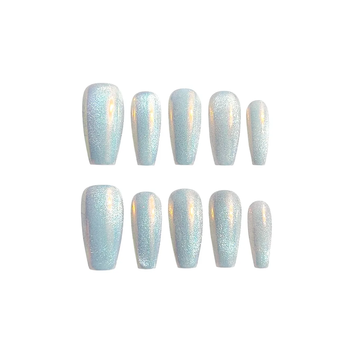 💅 Color: Iridescent white, with aqua blue, and soft orange holographic reflections