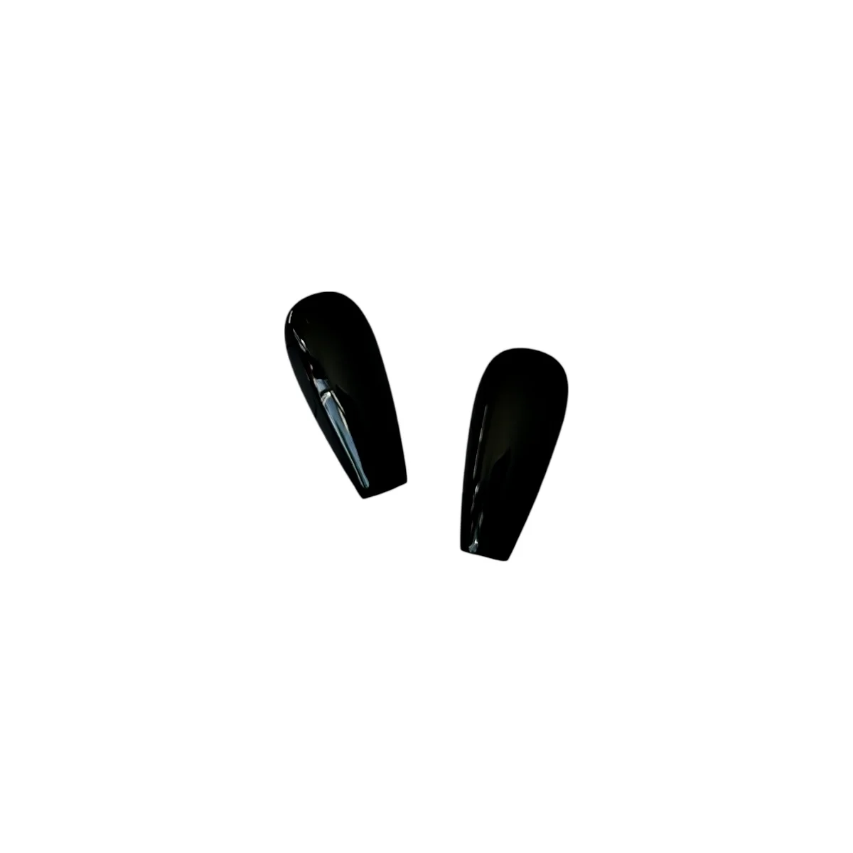 🔮 Finish: Ultra-glossy glass-like on both the solid black and the marble nails, with the glitter border adding a textured light band without feeling rough to the touch