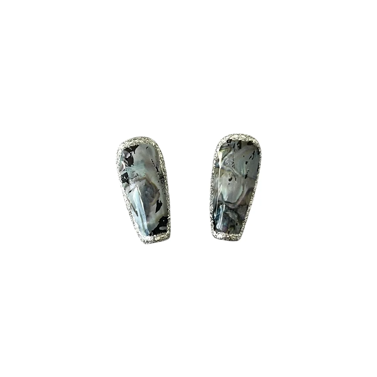 🫧 Effect: High-contrast, “smoke in glass” illusion, The marbled nails are framed with a halo of cool silver micro-glitter that gives a mysterious, almost cinematic vibe