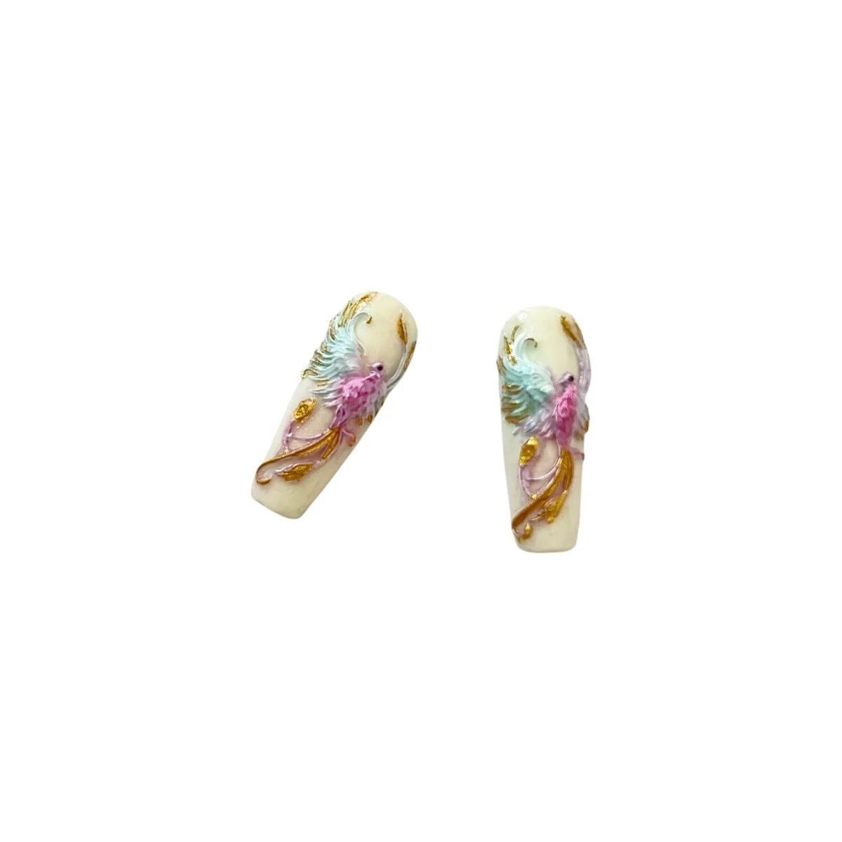 In the royal aviary, a single phoenix slept—its feathers brushed in lavender, its tail trailing in liquid gold. Whenever it stirred, the air shimmered, and small petals drifted down from nowhere, settling on balustrades and frames.